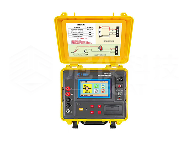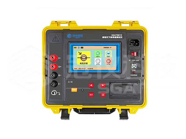 SGAT8815接地引下线导通测试仪,适用于电力设备接地引下线与接地网(或相邻设备)之间导通电阻值的测量,可有效检测电气设备与地网之间引线电阻因各种原因引起的电阻值增大的情况,以免造成设备失地运行。电力行业标准 DL/T475-2017《接地装置特性参数测量导则》规定:电气导通性应选用专门的仪器进行测量,仪器分辨率为 1mΩ,准确度不低于 1.0 级。